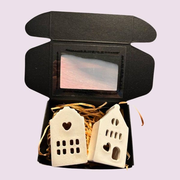 Gefertigt aus hochwertigen Materialien wie Kerakraft oder Raysin und versiegelt mit Wachs oder Lack, sind die Lichterhäuser robust und elegant zugleich. Für eine edle Präsentation kannst du sie optional in einer dekorativen Verpackung oder auf einer Holzbasis erhalten.