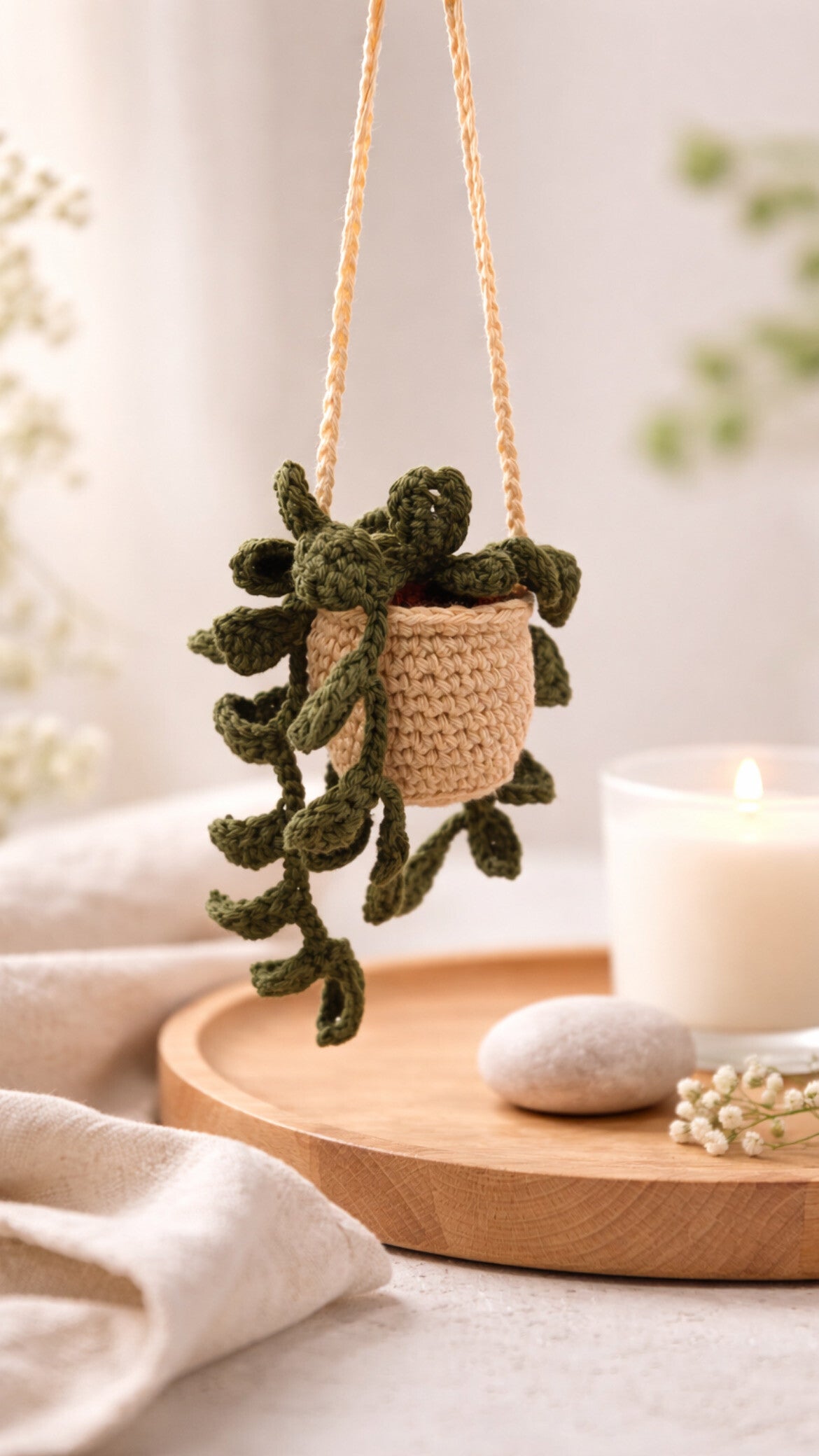 Diese liebevoll handgefertigte Hängepflanze bringt einen Hauch von Natur und Gemütlichkeit in dein Zuhause – ganz ohne Pflegeaufwand. Der kleine Blumentopf sowie die detailreichen Blätter sind sorgfältig gehäkelt und machen jedes Stück zu einem echten Unikat.